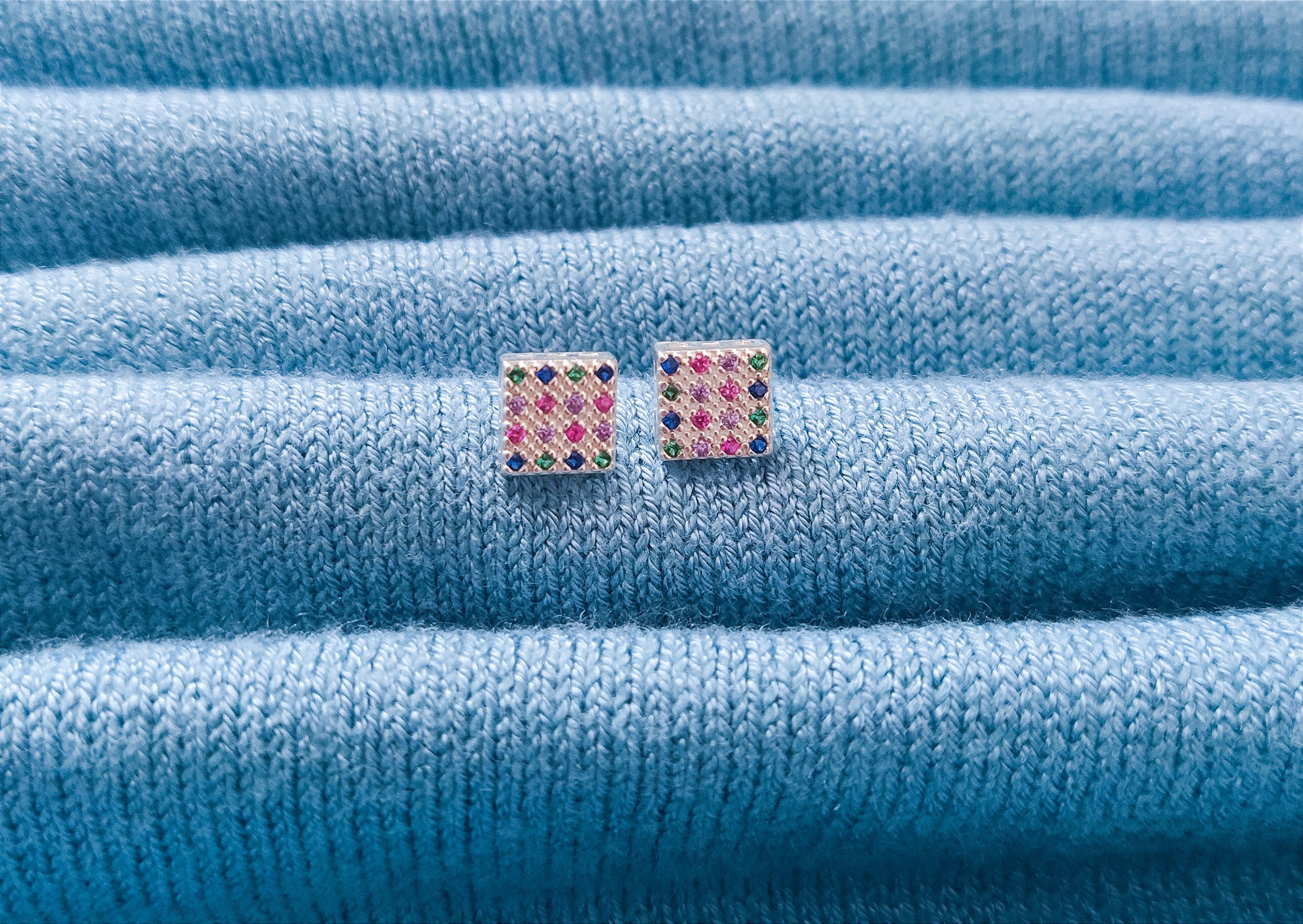 Este brinco quadrado com micro pedras de zircônia coloridas é a peça perfeita para quem deseja um acessório elegante e sofisticado. O pingente em formato de quadrado é delicado e moderno, e combina perfeitamente com qualquer look.