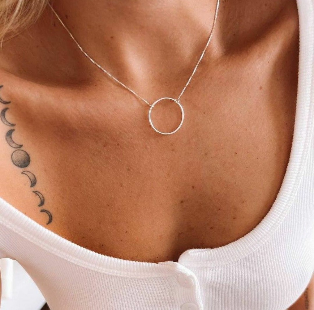 Minimalismo que encanta. O Colar Círculo da Essência traz o poder da simplicidade em um design elegante e atemporal. Seu pingente em formato de aro delicado representa unidade, equilíbrio e continuidade — um símbolo perfeito para quem busca significado nos detalhes.