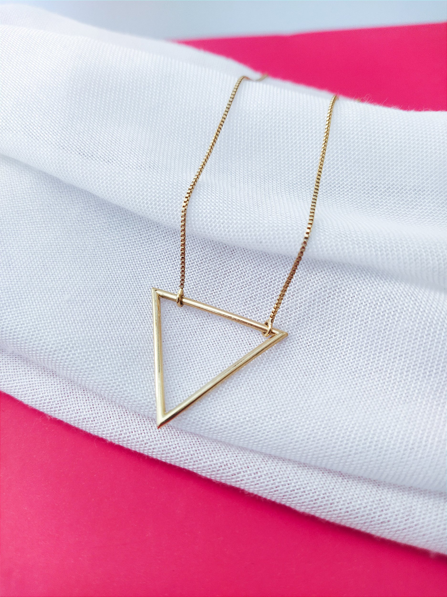 Este colar em formato de triângulo vazado banhado a ouro 18k é um acessório elegante e sofisticado que irá complementar qualquer look. O design triangular é clássico e atemporal, enquanto o banho de ouro 18k adiciona um toque de elegância e sofisticação.